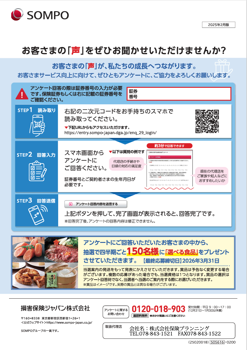 ご契約お手続きが完了されましたら誠にお手数ではございますが、お客さまの『声』をお聞かせいただけませんか?お客さまの『声』が私たちの成長につながります。